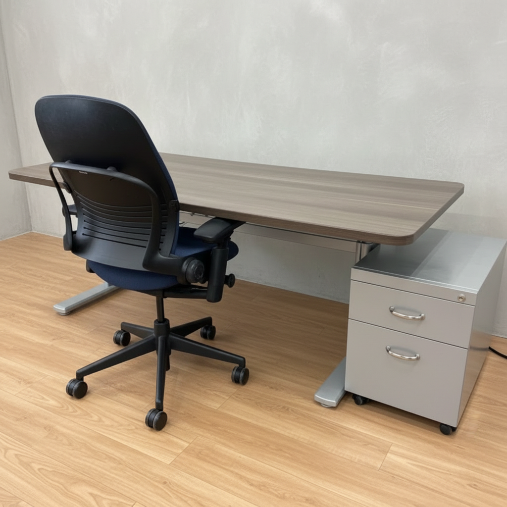 Oversized Steelcase Height Adjustable Work Desk Sit to Stand