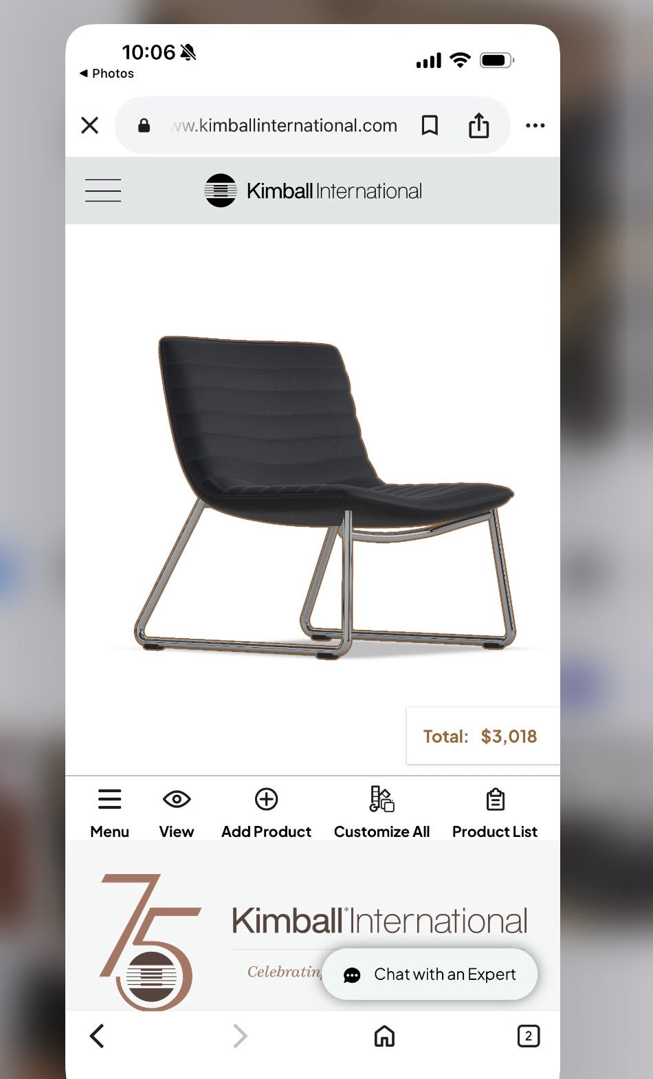 Grin Kimball Lobby Chair on Chrome Sled Base